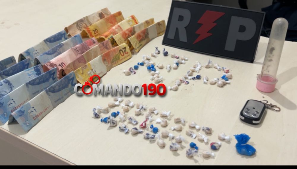 Durante a revista pessoal, os militares localizaram dezenas de invólucros plásticos contendo substância entorpecente semelhante à massa base de cocaína, além de uma quantia em dinheiro trocado, indicando possível atividade de tráfico.