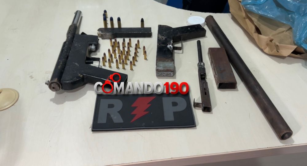 Também foi apreendida uma segunda arma artesanal ainda em fase de montagem, além de munições de diferentes calibres. Uma das armas apresentava sinais de uso recente, com percussor já deflagrado.