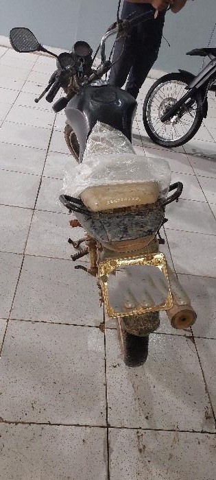 Durante a abordagem, foi realizada revista pessoal no condutor, não sendo encontrado nenhum material ilícito. Contudo, na verificação do veículo, foram constatadas divergências na cor original da motocicleta, além de indícios de adulteração na numeração do chassi e do motor, que apresentavam desalinhamento e sinais de remarcação.