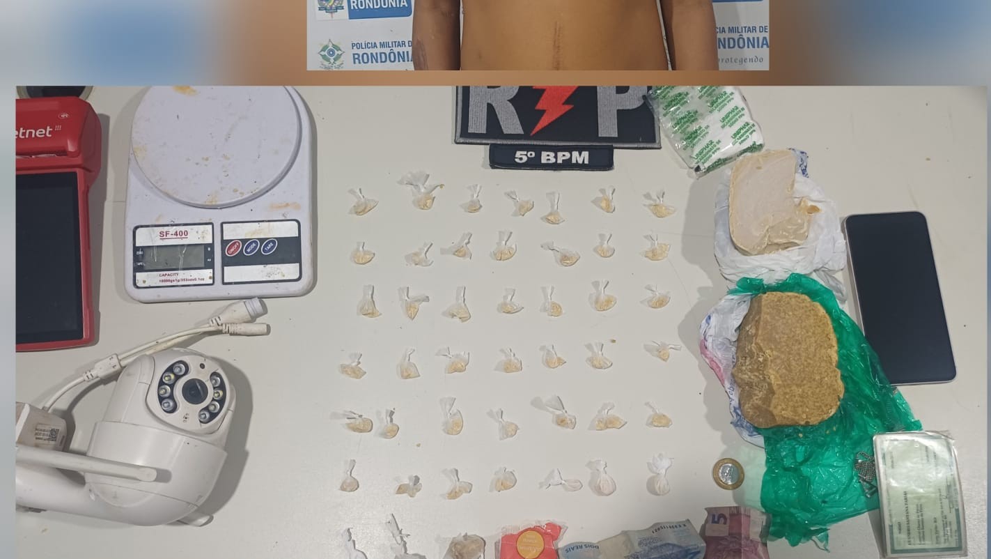 Por volta das 17horas desta segunda-feira (17), uma equipe do 5º Batalhão da Polícia Militar – Batalhão Belmont – realizou a prisão de um homem suspeito de tráfico de drogas no bairro Escola de Polícia, em Porto Velho.