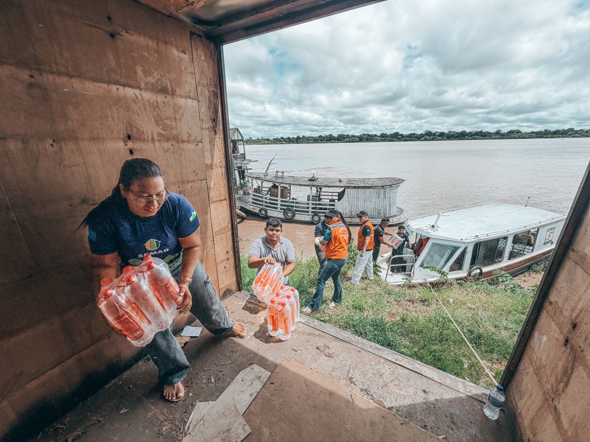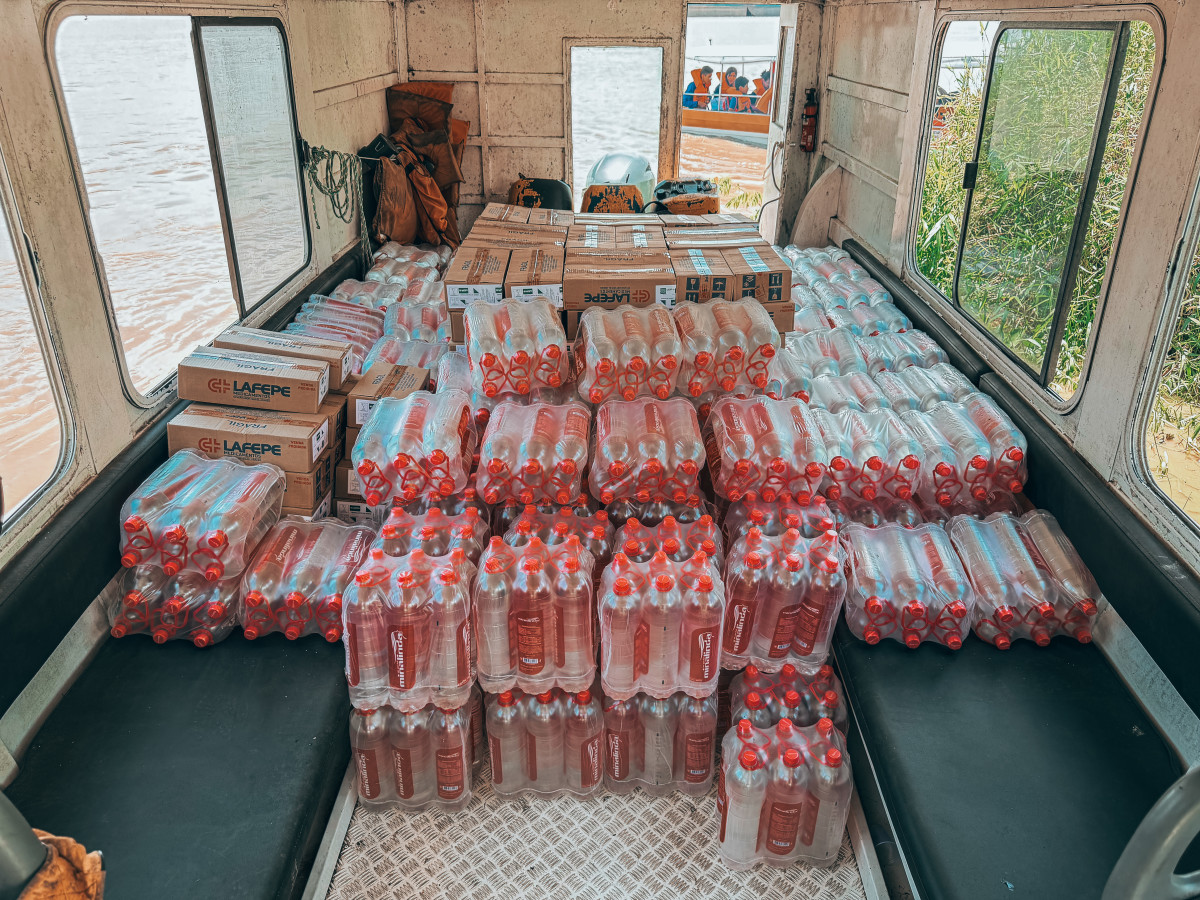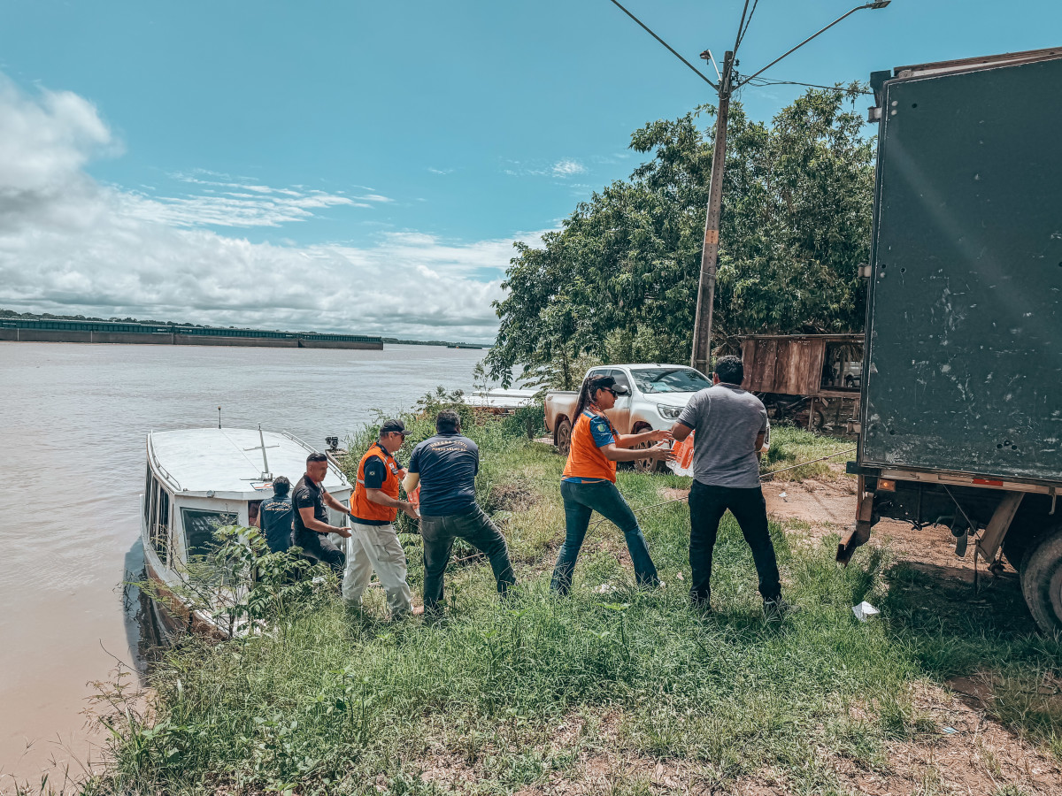 Ao todo, foram transportados mais de 1.200 litros de água potável e 110 caixas de hipoclorito, insumos fundamentais para garantir condições mínimas de saúde e qualidade de vida às famílias que vivem em áreas afetadas, tanto no período de cheia quanto na época da seca do Rio Madeira.